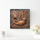 This highly dimensional square wall clock features a bold, heavily stylized illustration of a large tan shark with an open, toothy mouth and a happy, smiling brown seal swimming together. The entire design is rendered in muted brown and tan tones, strongly suggesting a deep carved relief or Engraved Wood Look, resembling aquatic wood or rock formations. The shark is positioned primarily behind the seal on the left, with its mouth open, while the seal is in the foreground looking forward with a friendly expression. They are surrounded by detailed, carved seaweed, kelp, and bubbles. The background is a dark wood panel with carved texture. The large, three-dimensional embossed text "BESTIES FOR LIFE" is carved across the top and partially down the right side in a bold, stylized font. The clock face features a simple clock face border with large, white, numbered tick marks (1 to 12) integrated into the outer frame. The artwork is surrounded by a thick, dark brown decorative border that resembles a black wood frame.