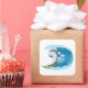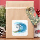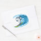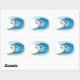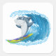 Sticker shown in a large square shape with a cute shark surfing print.
