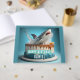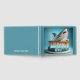 Birthdays guest book featuring a shark / "Jaws" themed Birthday Cake with "Happy Birthday", all-caps bold font. Personalize it by adding your text. Can be used through the years.