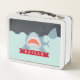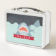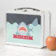 This cute and simple boy's lunch box features a navy blue background with an open mouth shark under the light blue water and a shark fin above the water. Personalize for your needs. You can find more matching products at my store.