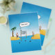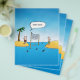 Your serve! This funny cartoon shows two castaways playing volleyball on their own personal islands with a sea of sharks waiting for one to come after a stray ball! With the caption "Your Serve." Funny and beautiful with a cool blue sea and sky.