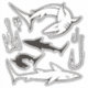 Shark and hook icons and silhouettes. Icon set dontour sticker.