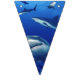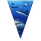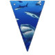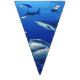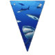 Banner flags shown with a photo print of sharks.