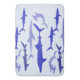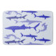 Whale shark, Hammerhead, Mako and Great White sharks in blue pattern.