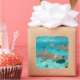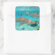 Square photo sticker with blacktip reef sharks and butterfly fish during scuba diving the clear blue lagoon of the pacific island of Bora Bora, near Tahiti in French Polynesia.