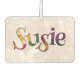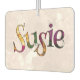 A fiesta of colour blooms the name “SUSIE” on her petal-soft pink custom car air freshener. A unique gift she'll never expect!