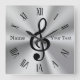 Sharp Personalized Treble Clef Clock, Silver Black Square Wall Clock