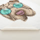 This design features a portrait of a Sharpei dog wearing teal tinted glasses.
