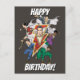 Check out this graphic of the Shazam Family of super heroes with Shazam in a lightning bolt at the centre: Freddy in blue, Mary in red, Eugene in grey, Darla in purple, and Pedro in green.