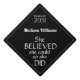 She Believed She Could So She Did Girl Power Graduation Cap Topper. Spot your grad easily from above in the crowd! Elegant cap topper with popular quote in modern white typography on a black background. Easily personalize with name and 'class of' year. Option to change the background and font colours to match your school colours. Step by Step Inspiration Series available exclusively on Zazzle at zazzle.com/store/KrisHarty, designed by international designer, Kris Harty. © 2020 Kris Harty Step By Step Inspiration