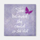 She Believed she Could so She Did Quote Butterfly Gifts and Merchandise. Vintage purple distressed damask background with cool white font. Motivational quotes for women and girls. Vikkelynn Designs & Co. Great backpack pink; stocking stuffers.