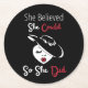 Motivational coaster that features the quote "She Believed She Could So She Did".