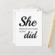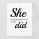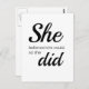 Motivational postcard for girls and women featuring the message "she believed she could, so she did".