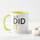 Celebrate a monumental achievement with this bold and stylish mug, perfect for any graduate. The phrase 'SHE DID IT.' is emblazoned in eye-catching black and yellow lettering, a vibrant declaration of success. This design is ideal for commemorating graduation, whether it's high school, college, or any other significant milestone. It's a wonderful way to honor the hard work and dedication that led to this proud moment. Make their graduation unforgettable with this celebratory and inspiring mug.