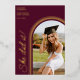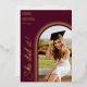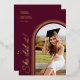 Celebrate your graduate's amazing accomplishment with this elegant She Did It arch photo graduation announcement. This stylish design features a modern arch with a customizable photo placeholder, perfect for showcasing your grad's senior portrait. The Burgundy colour adds a touch of sophistication. Personalize it with your graduate's name, school, class year, and a special message. Printed on high-quality card stock with real foil accents for a touch of luxury. Make your graduate shine with this beautiful and unique announcement!