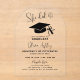 She Did It Cap Bow Graduation Acrylic Invitations. Scripted words "She did it" with silhouette of a graduation cap decorated with a coquette ribbon bow and there is black lettering on clear acrylic invitation. Calligraphy script wording let's everyone know that she did it. Invite friends and family to an chic graduation party celebration! Templates are easy to edit with all the grad party details for celebrating your graduate.