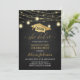Celebrate the milestone achievement with this stunning Graduation Invitation featuring the phrase 'She Did It!' in elegant script calligraphy. This modern design includes a sparkling gold graduation cap, twinkling lights, and a classic black background for a sophisticated and celebratory look. Perfect for any graduation party or announcement, this invitation is an excellent way to honour the hard work and success of your graduate.