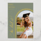 Celebrate your graduate's amazing accomplishment with this elegant She Did It arch photo graduation announcement. This stylish design features a modern arch with a customizable photo placeholder, perfect for showcasing your grad's senior portrait. The Sage Green colour adds a touch of sophistication. Personalize it with your graduate's name, school, class year, and a special message. Printed on high-quality card stock with real foil accents for a touch of luxury. Make your graduate shine with this beautiful and unique announcement!