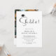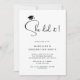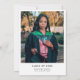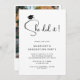 This modern minimal black and white graduation party invitation features "She did it" in stylish script, a grad cap, simple typography, and an option to add your photo at the back.