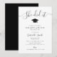 A simple graduation party invitation card with black and white colors. The text details can be personalized.