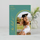 Celebrate your graduate's amazing accomplishment with this elegant She Did It arch photo graduation announcement. This stylish design features a modern arch with a customizable photo placeholder, perfect for showcasing your grad's senior portrait. The Teal colour adds a touch of sophistication. Personalize it with your graduate's name, school, class year, and a special message. Printed on high-quality card stock with real foil accents for a touch of luxury. Make your graduate shine with this beautiful and unique announcement!