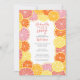 Whimsical citrus fruit in lemon, pinks, coral, orange and ruby red grapefruit colours. The hand drawn citrus slices include a watercolor painted texture for a juicy addition to a colourful wedding shower invitation.