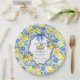 An elegant Bridal Shower design with blue tile background and lemons.