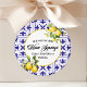 This is a Blue Mediterranean Tile She Found Her Main Squeeze Lemon Bridal Shower Party Favour Stickers!