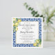 A She Found Her Main Squeeze Lemon Bridal Shower Theme is the perfect summer bridal shower. Refreshing and cool citrus fruit always create beautiful displays and refreshments. The Jenny's Lemons Collection takes chic watercolor lemons and pair them with Mediterranean blue tiles. In this design the tiles create a blue frame. A thin gold frame elevates it. Two lemon bouquets add a floral touch. She found her Main Squeeze is written at the top. The remainder of the bridal shower details follow. If you need help finding a matching item, please message me. I'm Nelda and I'd love to help.