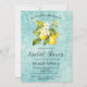 Elegant watercolor lemon-themed bridal shower invitation with the text "she found her main squeeze", a floral illustration, and a teal background. Personalize the text with your party details, RSVP information, and registry name.