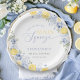Stylish paper plates featuring watercolor lemons and soft blue florals. Perfect for a summer bridal shower, combining practicality with elegant Mediterranean-inspired design.
