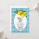An elegant Bridal Shower design with blue tile background and a cup of lemons.