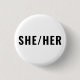 She Her Gender Pronouns black and white simple 1 Inch Round Button