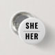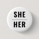 She Her Gender Pronouns black and white modern minimalist simple pin button.
