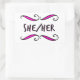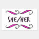 Pretty Black and Pink Scroll She Her stickers. Stick 'em everywhere and share!