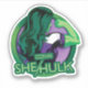 Circular badge with caricature of She-Hulk flexing in side profile. | For non-commercial personal use only.