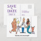 Humourous vintage save the date card, with sailor and mermaid, and his angry mom.
