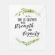 She is clothed in strength and dignity from Proverbs 31:35. Surrounded by watercolor leaves in handwritten typography.