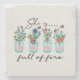 Ignite your inner strength with this bold and inspiring coaster featuring the phrase "She Is Full of Fire" with cute and vibrant flowers in vases and jars. This empowering floral artwork symbolizes passion, resilience, and confidence, making it perfect for strong, fearless women who embrace their fiery spirit. Ideal for gifts, home decor, or daily motivation!