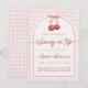 Featuring a playful cherry design and a classic gingham pattern, this invitation is perfect for a sweet and stylish baby shower celebration. The fun and feminine aesthetic makes it ideal for a coquette-inspired or summer baby shower.