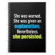 She was warned. She was given an explanation. Nevertheless, she persisted. A strong quote supporting Elizabeth Warren and her efforts to let democrats voices be heard in the senate. Never stop believing in progress.