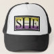 Baseball / Trucker Hat / Cap featuring the pronoun SHE in an minimalistic yet new and innovative design. Perfect gift for non-binary females or feminine identified persons.
