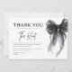 The minimalist black-and-white design reflects today’s most popular bow-themed and modern bridal aesthetics, making it easy to coordinate with your shower décor, invitations, signage, and tableware. Thoughtfully styled and easy to personalize, this thank you card feels refined, heartfelt, and effortlessly elegant.