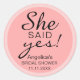 'SHE SAID YES' Bridal Shower Pink Envelope favour Classic Round Sticker