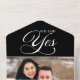 Elegant calligraphy engagement announcement. Easy to personalize with your details. Please get in touch with me via chat if you have questions about the artwork or need customization. PLEASE NOTE: For assistance on orders, shipping, product information, etc., contact Zazzle Customer Care directly https://help.zazzle.com/hc/en-us/articles/221463567-How-Do-I-Contact-Zazzle-Customer-Support-.