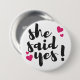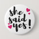 She Said Yes! Engagement Celebration – Romantic 3 Inch Round Button