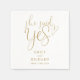 This elegant gold script "She said yes" engagement party napkin can be personalized with all your names and special date. Designed by Thisisnotme©
