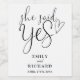 This elegant black and white script "She said yes" engagement party drinks label can be personalized with all your names and special date. Designed by Thisisnotme©