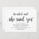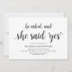 He asked, she said yes, Engagement Party Invitation card. Planning the engagement party celebration with the to-be Bride and to-be Groom? Invite the guests with this perfect Invitation Card. Add your details in matching black font / lettering.