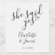 This stylish "she said yes" engagement party label can be personalized with your engagement party details. Designed by Thisisnotme©